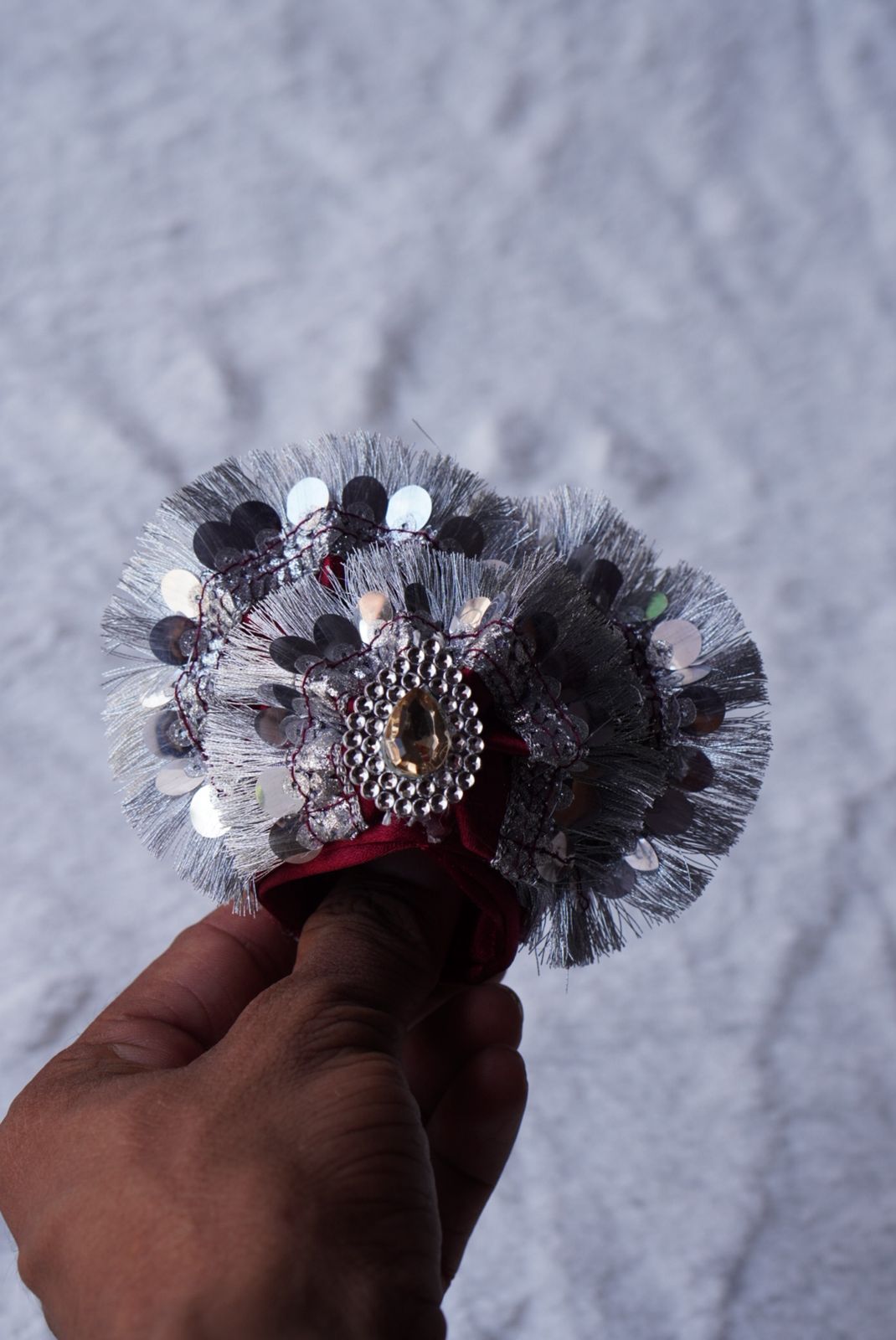 The silver lace detailing adds a divine shimmer, perfect for daily worship or festive occasions. Designed to be 100% washable, it retains its shine and shape even after multiple washes, making it ideal for regular use.