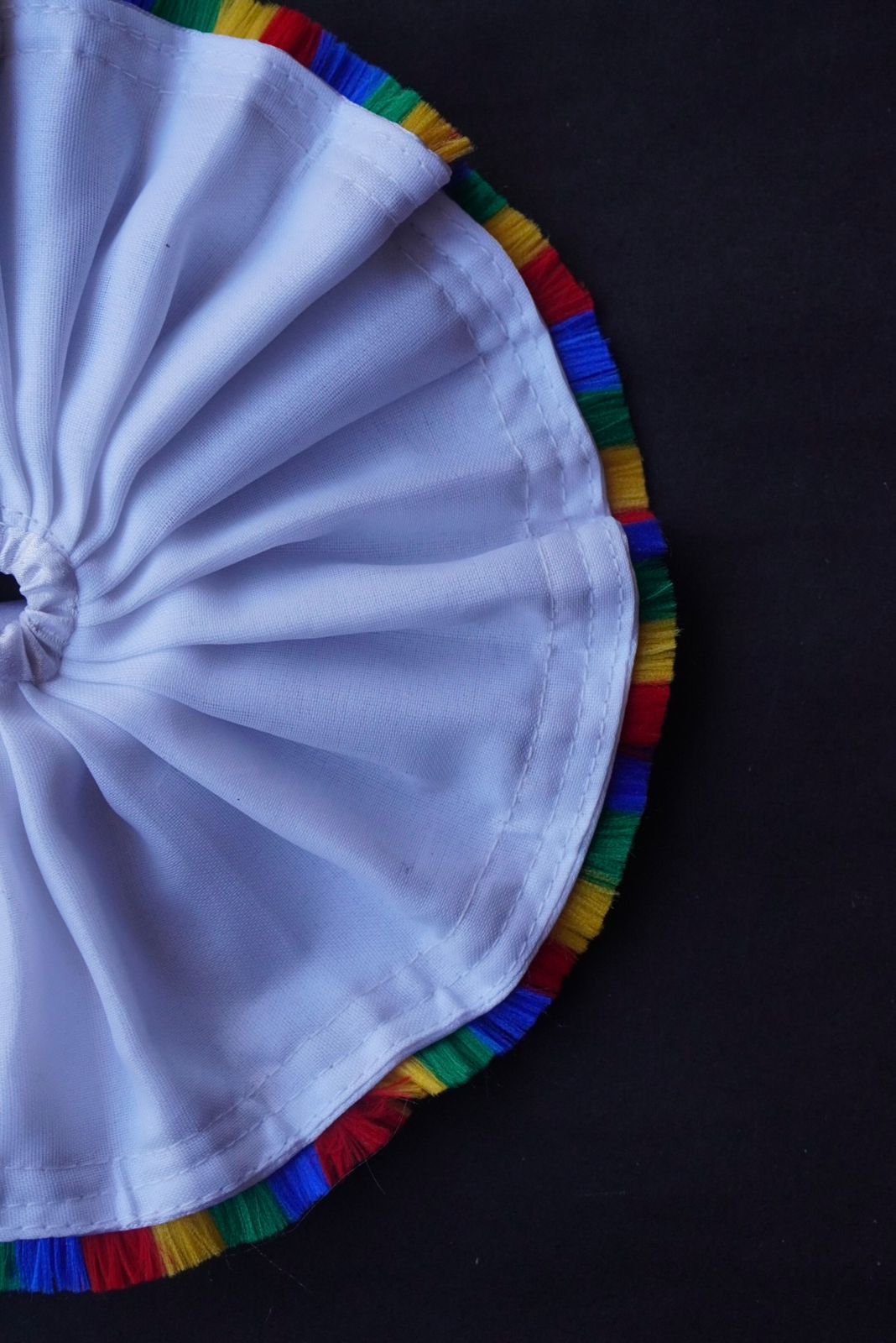 WHITE SATIN WITH MULTICOLOUR LACE//100% WASHABLE POSHAK//WITHOUTPAGDI